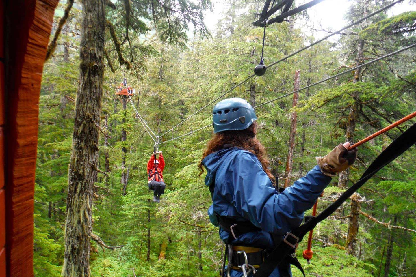 INCLUDED: All necessary ziplining gear, snacks, round trip transportation from downtown Juneau.